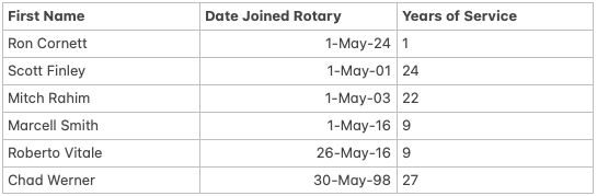 Amazing 2 new club members in 2 weeks. Welcome to Timothy Taite as our newest member. A little about Tim as he is a little slow about getting involved in the club so far. He applies through Rotary International for info on our club, He attends one club meeting in late April, He says he likes the club and the members he met, He fills out an application 2 days after his first club meeting, He is approved by the board and the club in less than 2 weeks, He then did Rotary College, He then signs up to be in charge of the 5K event for 2026, He then volunteers to be a greeter at club meetings also, He then comes to the next work day at the Women's Center, He is then inducted a few days later. Well what can I say he may be slow but after 4 years as membership chair no one has even been that fast. Also you cannot miss him at a club meeting as he usually loves to wear a fancy, expensive, custom fitted suit. He did mention to me that no suit was worn at the work day and we have pictures to prove that!! Say Hi too our newest member if you miss him at the front entrance.