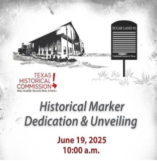 You can RSVP to attend here: Sugar Land 95 Historical Marker Dedication and Unveiling Ceremony.