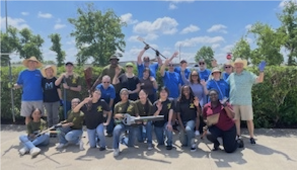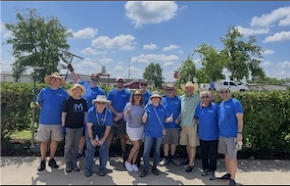 Well it was another Saturday Work Day in the life of the Rotary Club of Sugar Land. Last Saturday we were at the Thrift Wise Fort Bend Women’s Center Store and mulched all the trees and landscaping areas around the property. We had a total of 25 Volunteers including 14 Rotarians and family members, 10 ROTC students/leader and 1 House of Representative from Congress(Representative). Did you notice the new Rotary shirts worn by the Rotarians in the pictures!! Well when you come to a work project with our Club you can get a free shirt that says “Rotarian at Work”. We look forward to having you all come to the next club work day!!
