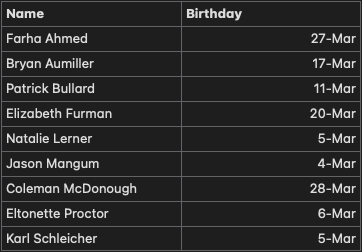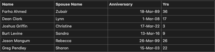 March Birthdays and Anniversaries