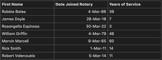 List of Rotarians of the Month